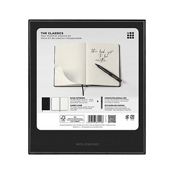 Σετ KAWECO X MOLESKINE, στυλό με μπίλια + σημειωματάριο L (13x21cm), με γραμμές, μαύρο