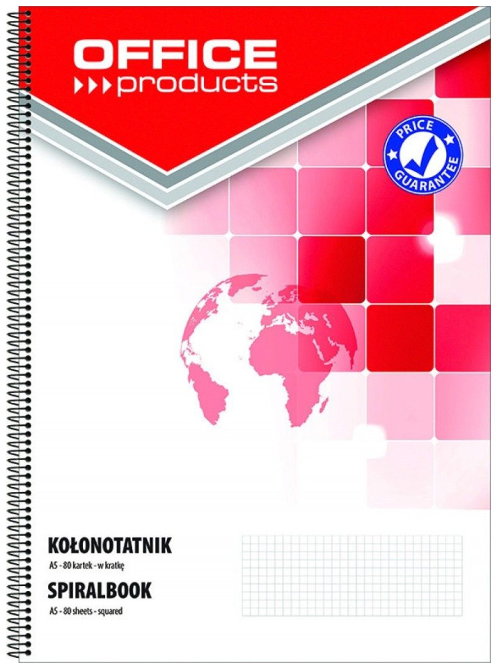 Kołonotatnik OFFICE PRODUCTS, A5, w kratkę, 80 kart., 60-80gsm, perforacja