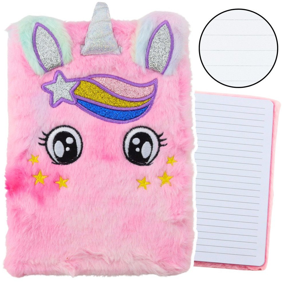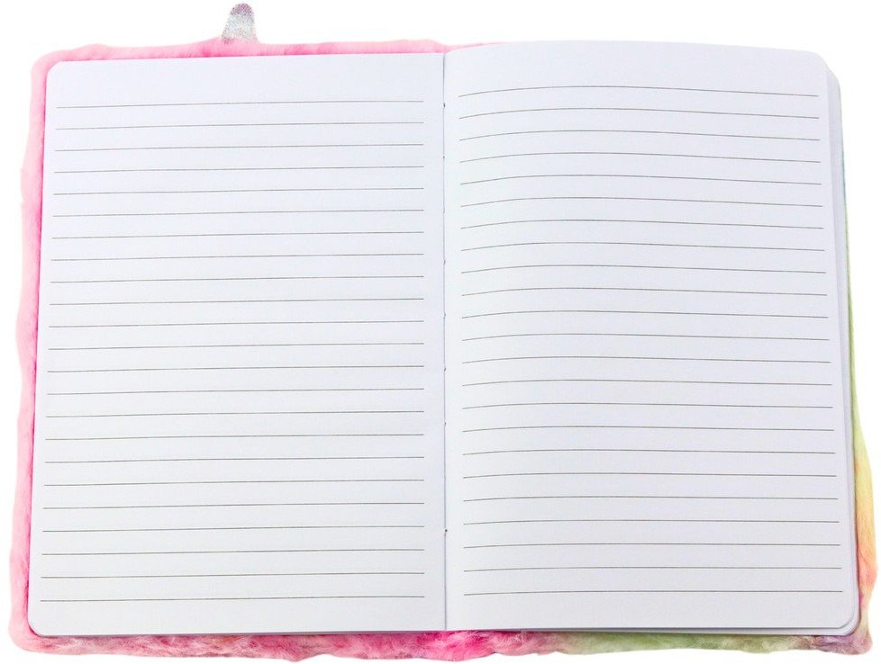 Ροζ Ουράνιο Τόξο Μονόκερος Λούτρινο Σημειωματάριο Με Γραμμές
