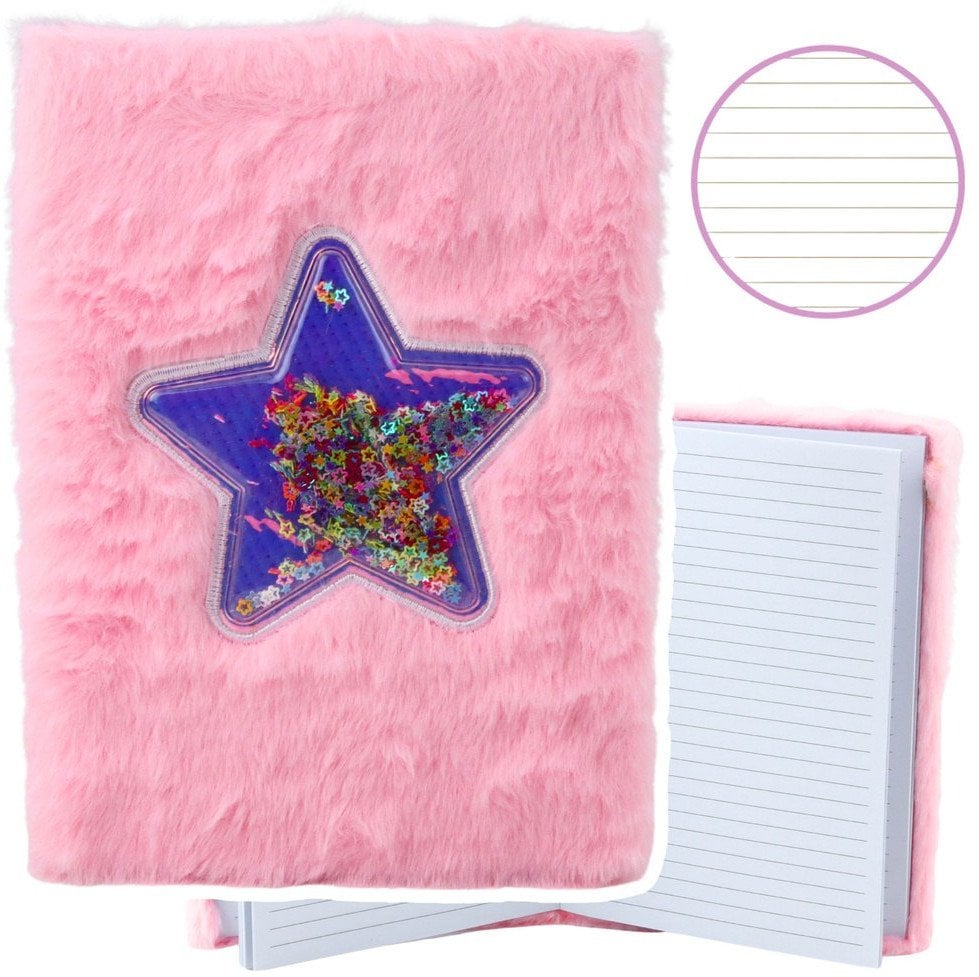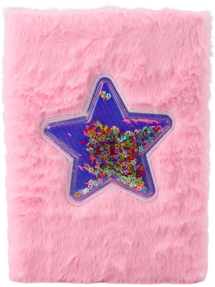 Λούτρινο Σημειωματάριο με Γραμμές Αστέρι με Κομφετί Ροζ A5 80 Σελίδες LEAN