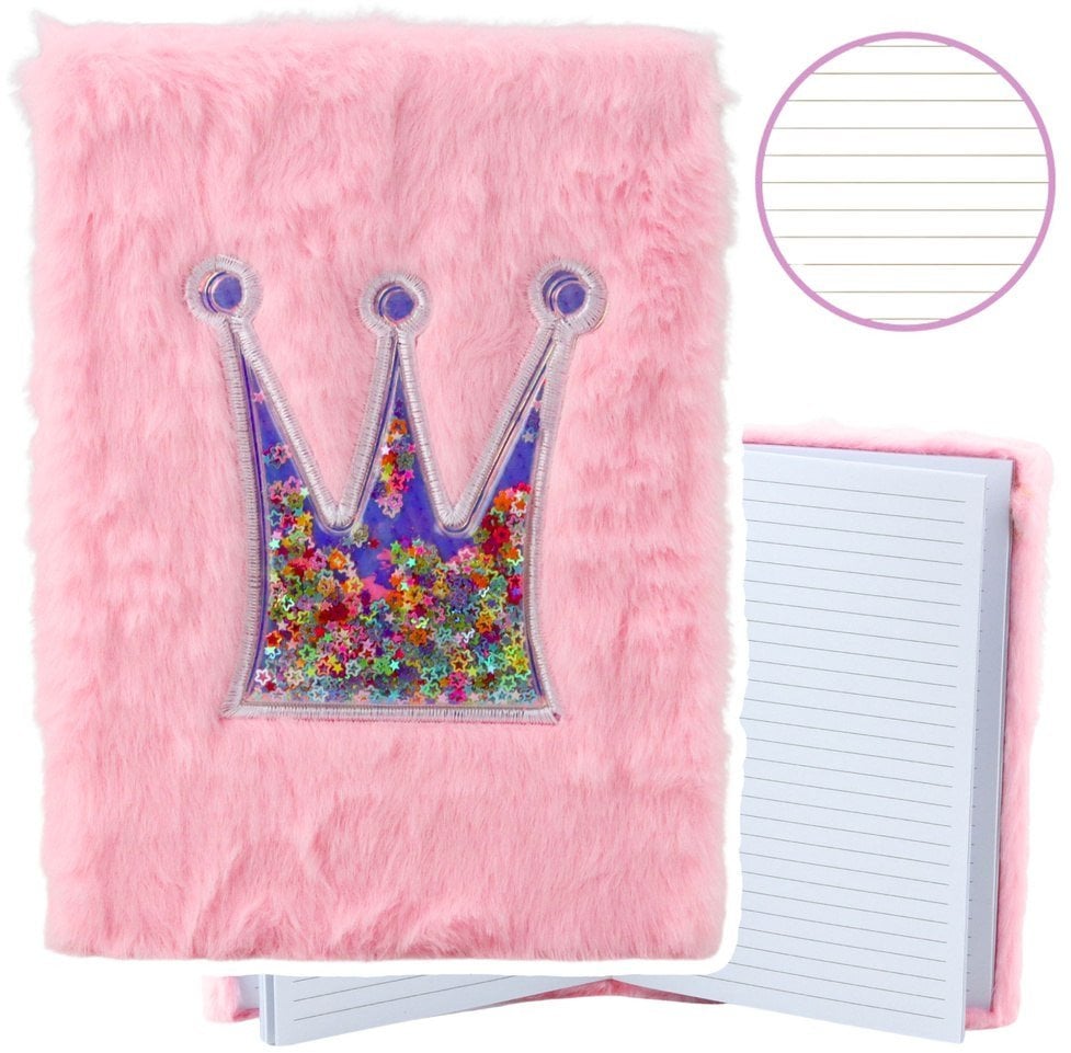 Λούτρινο Σημειωματάριο με Γραμμές Κορώνα με Κομφετί Ροζ A5 80 Σελίδες LEAN