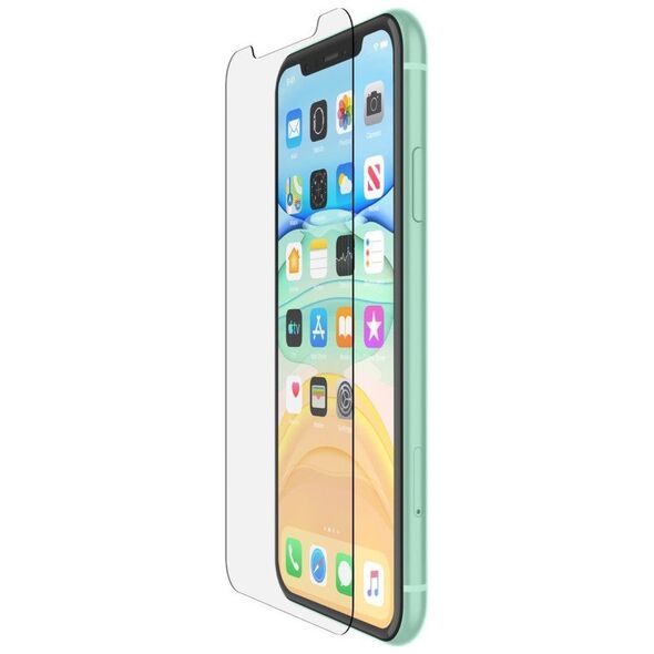 Belkin SCREENFORCE. Τύπος προστασίας οθόνης: Clear screen protector, Συμβατότητα μάρκας: Apple, Συμβατότητα: iPhone 11, iPhone XR, Χαρακτηριστικά ασφαλείας: Αντιβακτηριακό, Ανθεκτικό στα χτυπήματα. Χρώμα προϊόντος: Διαφανές. Ποσότητα ανά συσκευασία: 1 τεμ.{Type} Γυαλί . {Dedicated model} iPhone 11. {Προορισμός} Για την οθόνη