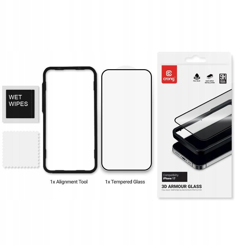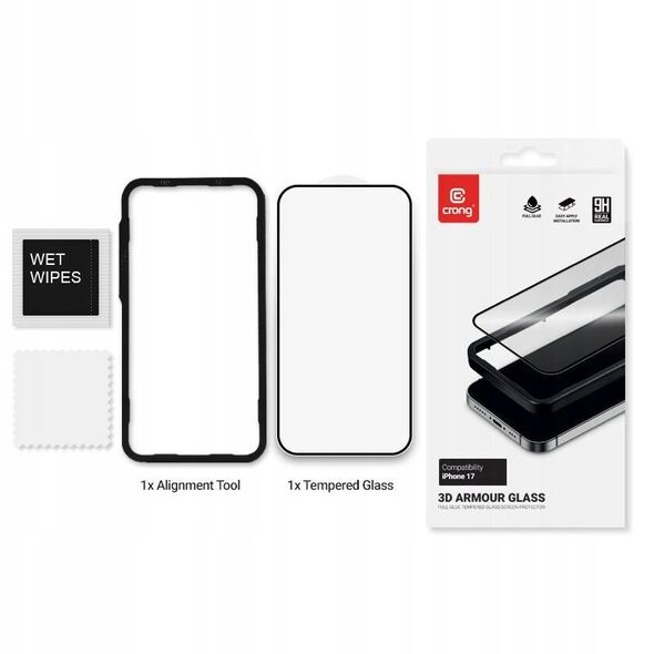 Crong 3D Armour Glass - Προστατευτικό γυαλί iPhone 17 + πλαίσιο εγκατάστασης