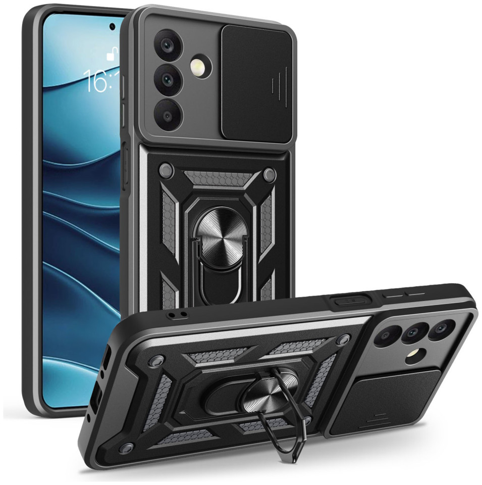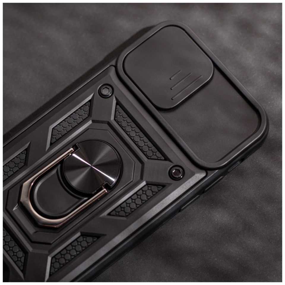 Defender Slide is a reinforced case for smartphones that provides good protection for the device. The product consists of several layers that stiffen and strengthen its construction. The case is made from PC, TPU, and features a built-in aluminum finger holder.#13#10#13#10The entire series has a movable camera cover that protects the lenses and ensures privacy. Additionally, raised edges protect the screen from cracking or scratching. The cases have necessary cutouts for ports and embossed areas for buttons. The frame has holes that allow for the attachment of a strap or lanyard.#13#10#13#10The Defender Slide case is compatible with magnetic mounts.