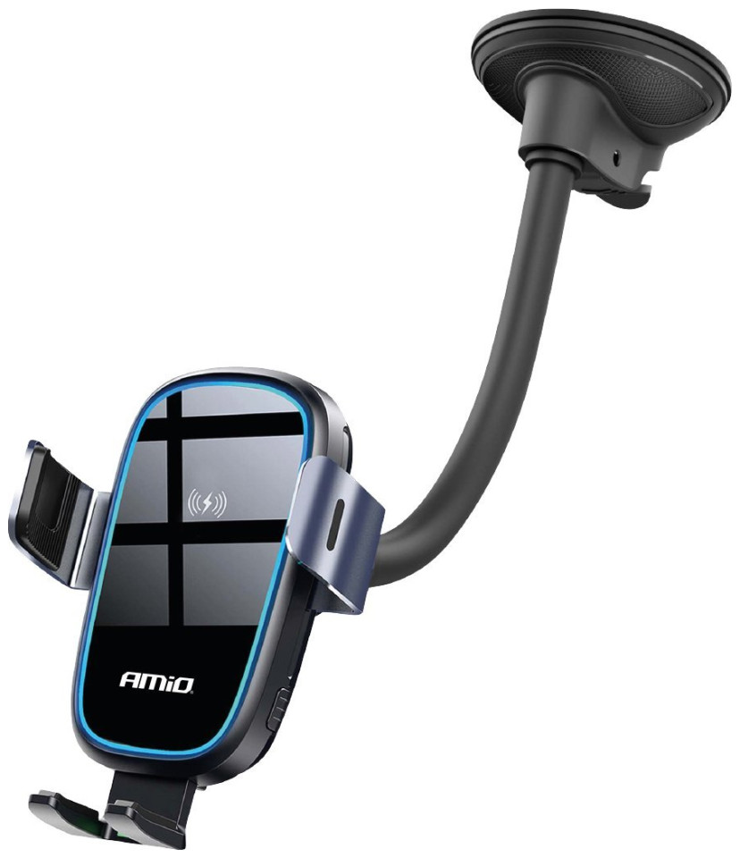 AMiO Βάση αυτοκινήτου για τηλέφωνο για το παρμπρίζ, το ταμπλό, με ασύρματο φορτιστή 15w amio-03780