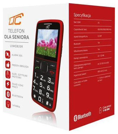 Τηλέφωνο GSM MOB20 για ηλικιωμένους 2G/CAM/BT/900mAh κόκκινο LTC