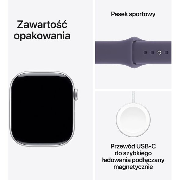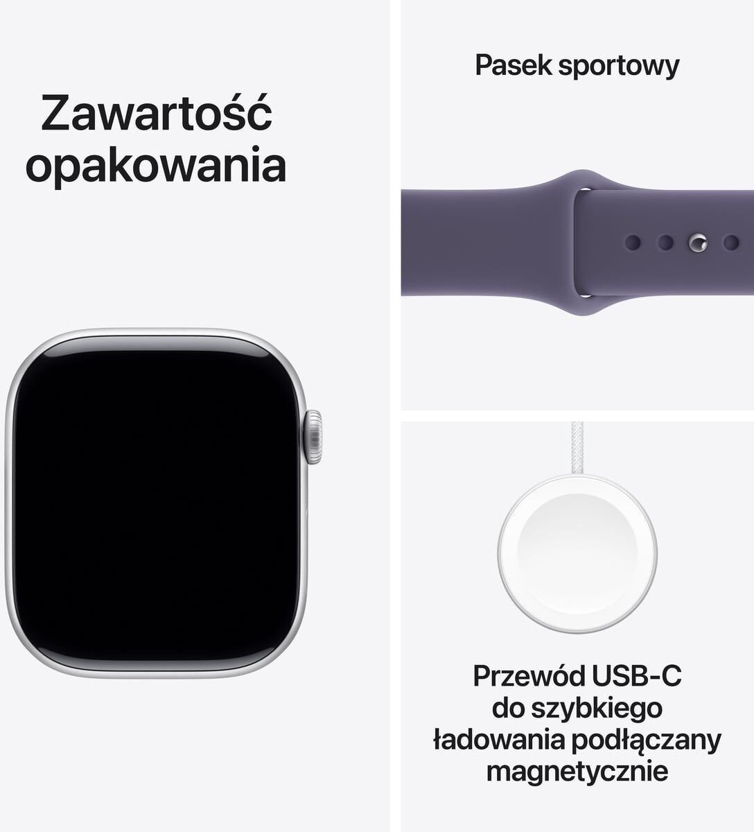 Apple Watch Series 11 GPS θήκη 42 mm από αλουμίνιο σε ασημί χρώμα, αθλητικό λουράκι σε χρώμα γαλακτώδους μοβ - μέγεθος S/M