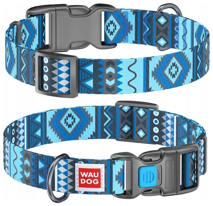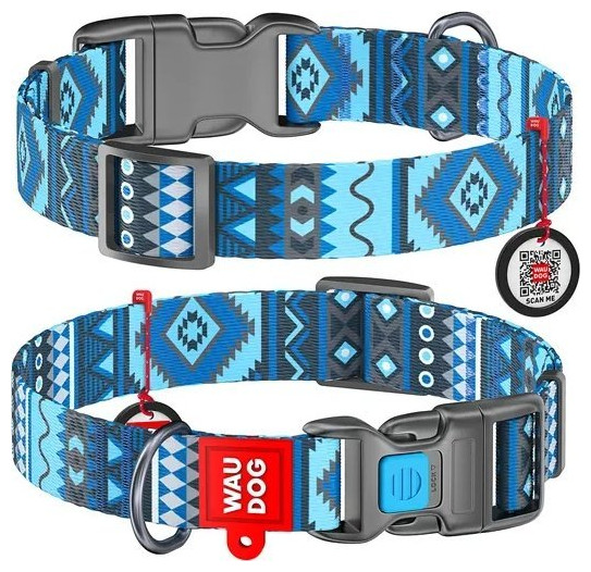 Collar WAU DOG ΠΕΡΙΛΑΙΜΙΟ ΝΑΪΛΟΝ ΜΕ QR ΕΤΙΚΕΤΑ 25mm/33-49cm ETNO ΜΠΛΕ