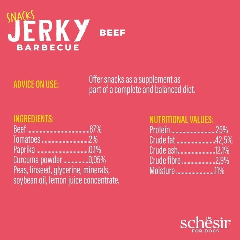 Jerky, przysmak, dla psów, wołowina BBQ suszona, 145 g, saszetka
