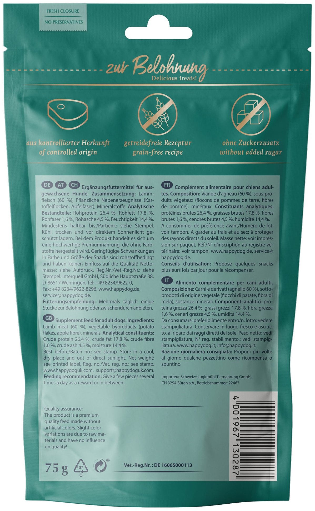 Κρεατικό Σνακ Lüneburger Heide, λιχουδιά, για σκύλο, αρνί, 75g