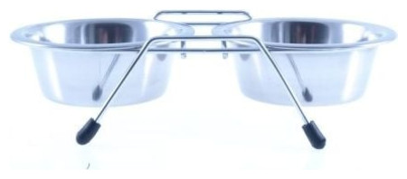 Μπολ από ανοξείδωτο χάλυβα Τα πόδια της βάσης είναι εξοπλισμένα με λαστιχένια μαξιλαράκια.{Υλικό} Μέταλλο . {Χρώμα} Ασημί . {Διάμετρος [cm]} 24 . {Χωρητικότητα [ml]} 2x2800