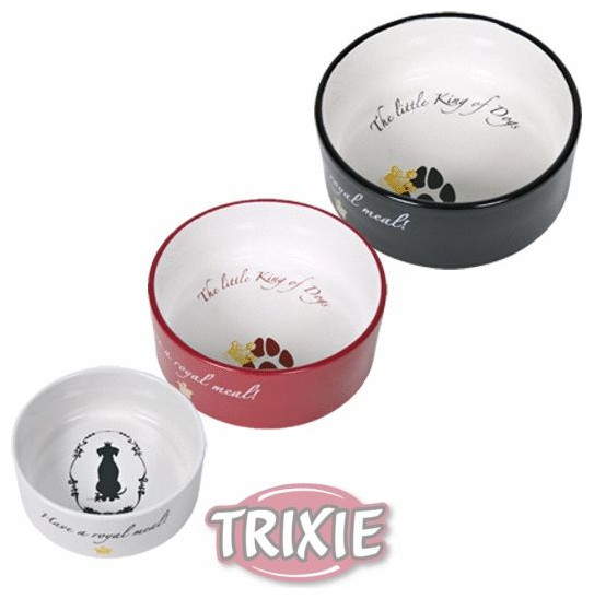 TRIXIE Kings of Dogs κεραμικό μπολ 0,25 l 12 cm Κεραμικό μπολ σκύλου Διαστάσεις: 0,25 l/ø 12 cm Μείγμα χρωμάτων, αποστέλλεται τυχαία{Υλικό} Κεραμικά . {Χωρητικότητα [ml]} 250 . {Χρώμα} Λευκό. {Χρώμα} Μαύρο. {Color}Κόκκινο
