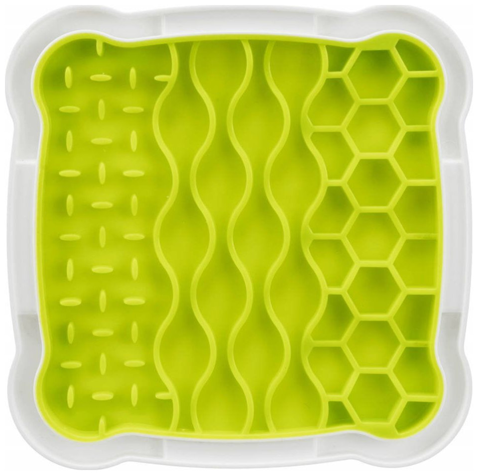 Η γερμανική εταιρεία Trixie χρησιμοποίησε υψηλής ποιότητας πλαστικό και TPR για την παραγωγή του μπολ, το οποίο είναι ασφαλές για τον τετράποδο φίλο μας. Ο δίσκος Lick'n'Snack Licking Plate έχει λαστιχένιο πάτο που τον εμποδίζει να κινείται ενώ τρώει.