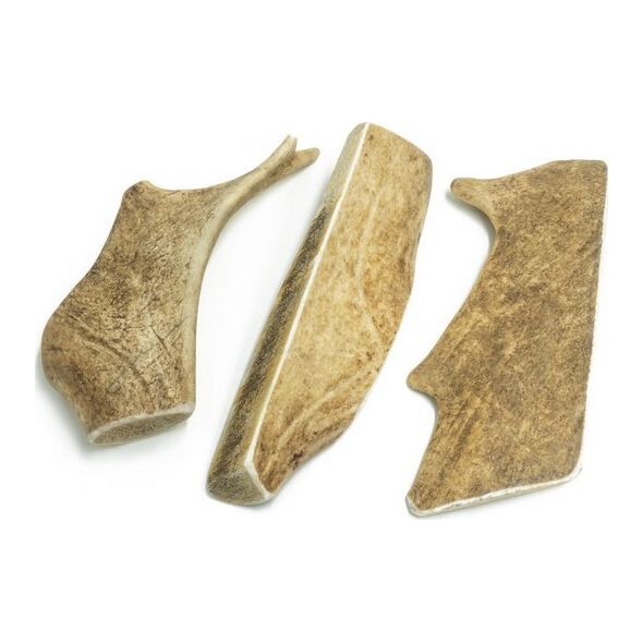 Φυσικό μάσημα από κέρατο ελαφιού Τα μασήματα με κέρατο ελαφιού είναι μια εξαιρετική λύση για σκύλους που τους αρέσει να μασάνε. Και οι ιδιοκτήτες τους μπορούν να είναι ικανοποιημένοι με τη φυσική και υγιή σύνθεση τέτοιων μασημάτων. Τα ελαφοκέρατα είναι εντελώς φυσικά, ανθεκτικά παιχνίδια για μάσημα που λατρεύουν οι σκύλοι. Τα μασήματα ελαφιού είναι άοσμα, μακράς διαρκείας, δεν θρυμματίζονται και βοηθούν στην αποφυγή προβλημάτων με τη διατήρηση των δοντιών καθαρά. Το μάσημα βοηθά στη μείωση της συσσώρευσης πλάκας και πέτρας και ηρεμεί τις καταστροφικές τάσεις και το άγχος των σκύλων εστιάζοντας την προσοχή τους στο μάσημα. Ένα επιπλέον πλεονέκτημα των οδοντογλυφίδων είναι η αντοχή τους. Σε αντίθεση με τα παραδοσιακά παιχνίδια, τα οποία τα ιδιοσυγκρασιακά σκυλιά μπορούν να φάνε μέσα σε λίγα μόνο λεπτά, ένας σκύλος μπορεί να απολαύσει το μάσημα του κέρατου για πολλές ημέρες. Τα κέρατα από τα οποία φτιάχνουμε τα μασήματα προέρχονται από ετήσιες σταγόνες ελαφιού αγρανάπαυσης - βρίσκονται σε πολωνικά και ξένα δάση και στη συνέχεια κόβονται κατάλληλα. Είναι δώρο από τη φύση και κανένα ζώο δεν έπαθε ζημιά κατά τη διαδικασία κατασκευής του οδοντοφυΐα Όλα τα κέρατα υποβάλλονται σε ενδελεχή ποιοτικό έλεγχο, πράγμα που σημαίνει ότι τα μεγέθη των οδοντοφυών είναι τα ίδια και σε τυποποιημένα σχήματα και όλες οι άκρες είναι λείες! ο σκύλος μπορεί να απολαύσει το δάγκωμα χωρίς τον κίνδυνο τραυματισμού. Πίνακας μεγεθών: Μέγεθος Μήκος Μέσο βάρος μικρό 9 - 13 cm 35 γρ Μ 13 - 16 cm 60 γρ μεγάλο 16 - 19 cm 85 γρ XL 19 - 25 cm 115 γρ Πλεονεκτήματα του μασήματος ελαφοκέρατου: Μεγάλη διάρκεια! Τα μασήματα ελαφοκέρατου μασούνται από τους σκύλους πολύ περισσότερο από τις παραδοσιακές λιχουδιές για ζώα όπως τα αυτιά, το πατημένο δέρμα και άλλα. Αυτό κάνει την αγορά τους οικονομική.   Ασφαλές μάσημα! Τα κέρατα ελαφιού είναι πολύ λιγότερο πιθανό να θρυμματιστούν και να θρυμματιστούν από τα επεξεργασμένα οστά. Χάρη στη δομή του, τα κέρατα δεν σπάνε ούτε θρυμματίζονται όταν μασηθούν, αλλά θρυμματίζονται αργά.    Υγιής! Τα μασώμενα κέρατα περιέχουν πολλά θρεπτικά θρεπτικά συστατικά και μέταλλα και είναι πολύ πλούσια σε ασβέστιο και κολλαγόνο. Όλα τα μασήματα ελαφοκέρατου είναι φυσικά, χωρίς συντηρητικά και αντιβιοτικά. Αυτά είναι φυσικά κέρατα χωρίς πρόσθετα.   Χωρίς μυρωδιά και χωρίς λεκέδες! Τα ελαφοκέρατα δεν έχουν ουσιαστικά καμία μυρωδιά ή στοιχεία που θα μπορούσαν να λερώσουν τον καναπέ, το χαλί ή τα έπιπλα. Αξίζει να γνωρίζετε για τα κέρατα: Το ελαφοκέρατο είναι ο ταχύτερα αναπτυσσόμενος οστικός ιστός στον κόσμο σε ολόκληρο το φυσικό περιβάλλον - αρχικά είναι ο χόνδρος που μεγαλώνει γρήγορα (έως και τρία εκατοστά την ημέρα) και στη συνέχεια οστεοποιείται. Τα ελάφια έριξαν τα κέρατα τους γύρω στον Φεβρουάριο - Μάρτιο και τον Ιούλιο/Αύγουστο εμφανίζονται νέα, πλήρως ανεπτυγμένα κέρατα βάρους πολλών κιλών στα κεφάλια τους! Κατά τη διάρκεια της ανάπτυξης, τα κέρατα είναι απαλά και καλύπτονται με βελούδινο δέρμα (σπονδυλική στήλη), το οποίο παρέχει όλα τα συστατικά που χρειάζονται για την ανάπτυξη του κέρατου. Όταν τα κέρατα φτάσουν στο σωστό μέγεθος, αρχίζουν να σκληραίνουν και η ακίδα στεγνώνει και φθείρεται. Το χειμώνα, ο χόνδρος μεταλλοποιείται σε σκληρό οστό και στη συνέχεια πέφτει - έτσι συμβαίνει η αποβολή. Τα κέρατα είναι ένα φαινόμενο της φύσης. Ενώ οι επιστήμονες προ
