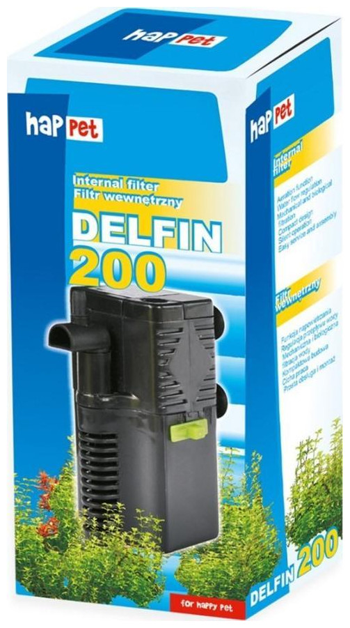 Εσωτερικό φίλτρο DELFIN 200 Το εσωτερικό φίλτρο ενυδρείου από τη σειρά Delfin παρέχει πολύ αποτελεσματικό μηχανικό και βιολογικό φιλτράρισμα. Διαθέτει πλήρως υποβρύχιο κινητήρα και ρύθμιση ροής νερού. Χαρακτηρίζεται από υψηλή απόδοση με μέγιστη παροχή 180l/h. Είναι αθόρυβο και εύκολο στη χρήση και την εγκατάσταση Τα πιο σημαντικά χαρακτηριστικά: Λειτουργία αερισμού Ρύθμιση ροής νερού Μηχανικό και βιολογικό φιλτράρισμα νερού Συμπαγές περίβλημα Αθόρυβη λειτουργία Οδηγίες λειτουργίας και εγκατάστασης [pdf] Τεχνικά στοιχεία: Χωρητικότητα: 180 l/h Ισχύς: 3 W. Διαστάσεις: 50 x 45 x 90 mm Σχεδιασμένο για δεξαμενές μέγιστης χωρητικότητας 50 λίτρων*Κατά την παραγγελία ενός συγκεκριμένου φίλτρου, δώστε τον κατάλληλο κωδικό από τον πίνακα