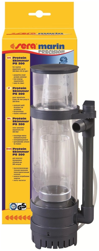 Μικρό skimmer πρωτεΐνης που εξοικονομεί χώρο για θαλάσσια ενυδρεία Τα skimmer πρωτεΐνης είναι ζωτικής σημασίας για τη διήθηση του νερού σε θαλάσσια ενυδρεία. Αφαιρούν πρωτεΐνες που απελευθερώνονται συνεχώς στο νερό από μικροοργανισμούς, ασπόνδυλα και ψάρια. Αποτελεσματικά και οικονομικά skimmers αφαιρούν σωματίδια, επιπλέουσες ουσίες και παρέχουν οξυγόνο στο ενυδρείο. Το εξοικονόμησης ενέργειας Protein Skimmer PS 200 της Sera είναι πολύ συμπαγές και καταλαμβάνει λίγο χώρο. Είναι ιδανικό για νανοενυδρεία και ενυδρεία χωρητικότητας έως 200 λίτρα. Η συσκευή διαθέτει μια αντλία εξοικονόμησης ενέργειας ενσωματωμένη στο περίβλημα, η οποία αντλεί ο ίδιος αέρα και τον αναμιγνύει με το νερό του ενυδρείου. Μπορούν εύκολα να στερεωθούν μέσα στο ενυδρείο χρησιμοποιώντας το ρυθμιζόμενο ύψος βραχίονα. Η ροή του αέρα και του νερού μπορεί να ρυθμιστεί εύκολα sera Protein skimmer PS 200 - Protein Skimmer Πλεονεκτήματα: αφαιρεί τις πρωτεΐνες από το νερό παρέχει οξυγόνο στη ρύθμιση του αέρα και τη ροή του νερού υψηλή ποιότητα κατασκευής Κατανάλωση ισχύος: 8W Απόδοση: 200 l/h Ενυδρείο. μέγεθος: μέγιστο 200 λίτρα Διαστάσεις: 310 x 125 x 100 mm