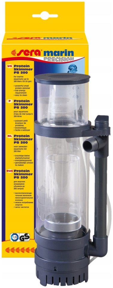 SERA Odpieniacz białek PS 200 - Protein Skimmer ZYSKAJ: pobór energii: 8W wydajność: 200 l/h wielkość Akwarium: do maks. 200 litrów instalacja wewnątrz zbiornika niewielkie rozmiary wymiary: 310x125x100mm usuwa z wody białka napowietrza wodę regulowany przepływ powietrza i wody doskonała jakość wykonania Protein Skimmer PS 200 Odpieniacze białek to kluczowy element filtracji wody w akwarium morskim. Usuwają białka uwalniane do wody przez mikroorganizmy, bezkręgowce i ryby. Wydajne i ekonomiczne odpieniacze usuwają zanieczyszczenia, unoszące się substancje i napowietrzają akwarium. Energooszczędny odpieniacz sera marin Protein Skimmer PS 200 jest kompaktowy i nie zajmuje dużo miejsca. Jest odpowiedni do małych i średnich akwariów o pojemności do 200 litrów. Wyposażony w energooszczędną pompę zintegrowaną z obudową urządzenia, która automatycznie pobiera powietrze i mieszana je z wodą akwariową.Urządzenia można łatwo zamontować wewnątrz akwarium za pomocą uchwytu z regulacją wysokości. Przepływ powietrza i wody można łatwo dostosować. Pobór energii: 8W Wydajność: 200 l/h Wielkość Akwarium: maks. 200 litrów Wymiary: 310 x 125 x 100 mm