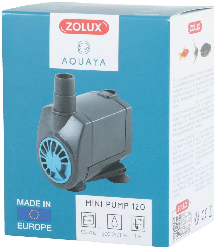 Μίνι αντλία νερού για ενυδρεία με χωρητικότητα έως 120 l Ρυθμιζόμενη παροχή από 200 έως 550 l/h. Ύψος ανύψωσης (H max) 1,00 m Ηλεκτρικό καλώδιο μήκους 2 m Κατάλληλο για καλώδιο διαμέτρου 12/16.