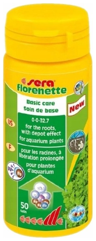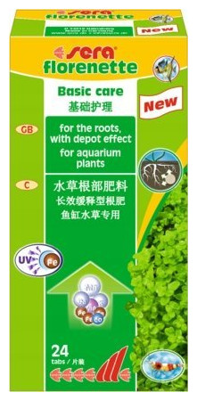 SERA FLORENETTE 50 tabletek Produkt do pielęgnacji roślin z magazynowaniem składników na korzenie Podstawowa ochrona Dla korzeni, z magazynowaniem Dla roślin akwariowych sera florenette to doskonały produkt pielęgnacyjny dla roślin wodnych, które pobierają składniki odżywcze głównie za pomocą korzeni. Forma tabletki umieszczanej w dnie dostarcza roślinom wodnym wszystkich niezbędnych minerałów i mikroelementów potrzebnych do zdrowego i kolorowego wzrostu. Specjalna formuła zapewnia długotrwałe dostarczanie składników odżywczych, zwłaszcza w przypadku częstych niedoborów żelaza. Naturalne stymulatory wzrostu wzmacniają impuls wzrostowy, co znacznie ułatwia fazę początkową. Produkt ten nie zawiera azotanów ani fosforanów. Jest dobrze tolerowany przez wszystkie bezkręgowce. Ze względu na korzystny wpływ na wzrost rośliny wodne, ograniczane jest rozprzestrzenianie się glonów. Kombinacja sera florena i sera florenette jest idealnie zbalansowana i spełnia wszystkie wymagania różnych gatunków roślin wodnych. Zalecane dawkowanie Podaj raz na tydzień 1 tabletkę / 20 l. Tabletki należy wcisnąć w podłoże na głębokość około 1 – 2 cm, blisko korzeni roślin (można połamać tabletkę i umieścić kawałki w kilku miejscach). Stosuj tylko w razie potrzeby. Nie przekraczaj zalecanej dawki.