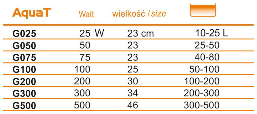 - Θερμοστάτης με ανοχή 1oC{Type} Θερμαντήρας . {Type} Θερμαντήρας . {Type} Θερμαντήρας . {Ισχύς [W]} 50 . {Ισχύς [W]} 50 . {Ισχύς [W]} 50 . {Χωρητικότητα ενυδρείου [l]} 25-50 . {Χωρητικότητα ενυδρείου [l]} 25-50 . {Χωρητικότητα ενυδρείου [l]} 25-50 . {Θερμοκρασία [ºC]} 20-34 . {Θερμοκρασία [ºC]} 20-34 . {Θερμοκρασία [ºC]} 20-34