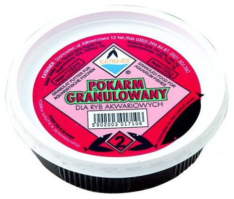 Τροφή για όλα τα ψάρια ενυδρείου Katrinex.   Τρόφιμα υψηλής περιεκτικότητας σε πρωτεΐνες διατίθεται σε ξηρή μορφή, σε διάφορα πάχη κόκκων. Συνιστάται για όλα τα ψάρια ενυδρείου ως εξαιρετικό συμπλήρωμα ζωικής πρωτεΐνης.  {Type} Κόκκος . {Χωρητικότητα/βάρος:} 100ml. {Προβλεπόμενη χρήση} Για ψάρια ενυδρείου