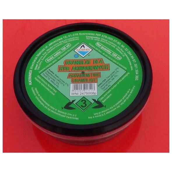 Τρόφιμα υψηλής περιεκτικότητας σε πρωτεΐνες διατίθεται σε ξηρή μορφή, σε διάφορα πάχη κόκκων. Συνιστάται για όλα τα ψάρια ενυδρείου ως εξαιρετικό συμπλήρωμα ζωικής πρωτεΐνης.{Type} Κόκκος . {Χωρητικότητα/βάρος:} 100ml. {Προβλεπόμενη χρήση} Για ψάρια ενυδρείου