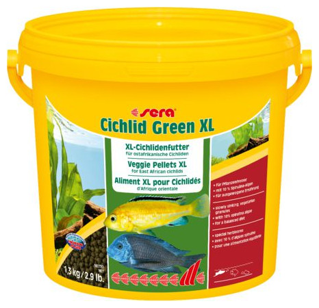 Το sera Cichlid Green XL είναι μια βασική τροφή με τη μορφή προσεκτικά παραγόμενων κόκκων για μεγαλύτερες κιχλίδες και άλλα μεγάλα ψάρια που τρέφονται κυρίως με φυτά και περιφύτονα.