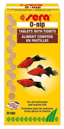 Το sera O-Nip FD-mix είναι ένα μείγμα τροφίμων πλούσιο σε συστατικά σε μορφή ταμπλετών για τη διατροφή όλων των τύπων διακοσμητικών ψαριών. Τα δισκία προσαρμόζονται εύκολα στο εσωτερικό του γυαλιού του ενυδρείου. Χάρη σε αυτό, ο ενυδρείος μπορεί εύκολα να παρατηρήσει τα ψάρια του ενώ τρέφονται.{Type} Tablets . {Type} Tablets . {προορίζεται} για διακοσμητικά ψάρια. {προορίζεται} για διακοσμητικά ψάρια. {Χωρητικότητα/βάρος:} 24 τεμ. . {Χωρητικότητα/βάρος:} 24 τεμ.