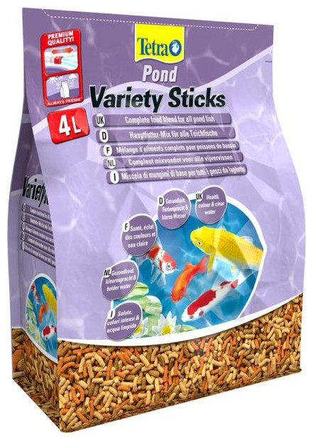 Tetra Pond Variety Sticks Mieszanka trzech rodzajów pokarmu w pałeczkach zapewnia pożywną, a zarazem zróżnicowaną dietę rybom w oczkach wodnych i stawach ogrodowych. Zawiera wszystkie niezbędne składniki odżywcze, witaminy oraz mikroelementy Wzmacnia intensywność naturalnego ubarwienia dzięki wysokiej jakości naturalnym substancjom Dzięki wysokiej jakości pałeczkom z zawartością kiełków pszenicy pokarm jest bogaty w błonnik i lekkostrawny Stabilizowana witamina C wspomaga odporność na choroby Pokarm jest dobrze przyswajany, nie zanieczyszcza wody Idealny jako codzienny pokarm dla wszystkich ryb w stawie ogrodowym Pokarm jest dostępny w szczelnie zamykanych torbach wykonanych z wysokiej jakości plastiku, który zapewnia ochronę przed szkodliwym działaniem światła słonecznego, powietrza i wilgoci. Pokarm zachowuje wszystkie ważne składniki odżywcze oraz świeżość