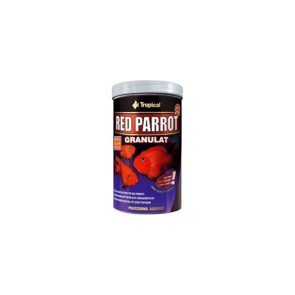 RED PAPROT GRANULAT Τροφή για ενίσχυση του χρώματος σε μορφή κόκκων για κιχλίδες παπαγάλων. Τροφή που ενισχύει το χρώμα σε μορφή πλωτών κόκκων για παπαγάλους κιχλίδες και άλλα είδη ψαριών από την οικογένεια Cichlidae που απαιτούν σημαντικό μερίδιο καροτενοειδών στη διατροφή τους, ενισχύοντας τα χρώματά τους. Ο αποτελεσματικός χρωματισμός είναι το αποτέλεσμα της υψηλής περιεκτικότητας σε φυσική ασταξανθίνη (100 mg/kg), η οποία αφομοιώνεται εύκολα και συσσωρεύεται στα χρωματοφόρα. Ένα σημαντικό ποσοστό ωμέγα-3 και ωμέγα-6 λιπαρών οξέων ενισχύει το ανοσοποιητικό σύστημα και διατηρεί τα ψάρια σε άριστη κατάσταση. Υψηλή υδροσταθερότητα σημαίνει ότι οι κόκκοι διατηρούν τη δομή τους στο νερό για εξαιρετικά μεγάλο χρονικό διάστημα, χωρίς να το λερώνουν ή να απελευθερώνουν πολύτιμα θρεπτικά συστατικά στο νερό. Ο όγκος του αυξάνεται ελαφρώς υπό την επίδραση του νερού, επομένως δεν υπάρχει κίνδυνος πεπτικών προβλημάτων στα ψάρια που τρώνε μεγαλύτερη μερίδα κόκκων.