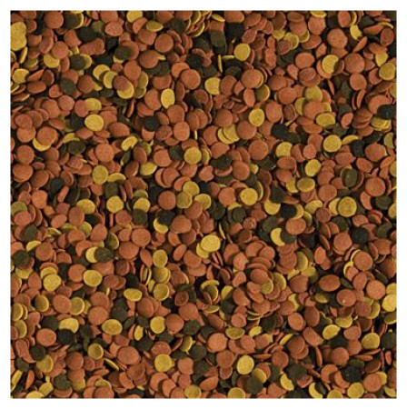 Πλήρες μείγμα ζωοτροφών για διακοσμητικά ψάρια. Συστατικά: ψάρια και προϊόντα ψαριών, προϊόντα φυτικής προέλευσης (συμπεριλαμβανομένου του εκχυλίσματος κόκκινης πιπεριάς 2.000 mg/kg), εκχυλίσματα φυτικών πρωτεϊνών, μαλάκια και μαλακόστρακα, δημητριακά, φύκια, μαγιά (συμπεριλαμβανομένης της Βήτα-1,3/1,6-γλυκάνης 1.000 mg/kg), λάδια και λίπη, πρώτες ύλες ζωοτροφών ορυκτής προέλευσης (συμπεριλαμβανομένου του ζεόλιθου 1%). Πρόσθετα (ανά κιλό): Βιταμίνες, προβιταμίνες και χημικά σαφώς καθορισμένες ουσίες με παρόμοια δράση: βιτ. A 29.800 IU, βιτ. D3 1.890 IU, βιτ. Ε 100 mg, βιτ. C 500 mg. Μείγματα ιχνοστοιχείων: E1 (Fe) 37,8 mg, E6 (Zn) 10,5 mg, E5 (Mn) 7,8 mg, E4 (Cu) 1,7 mg, E2 (I) 0,23 mg, E8 (Se) 0,23 mg, E7 (Mo) 0,05 mg. Βαφές. Αντιοξειδωτικά. Αναλυτικά συστατικά: ακατέργαστη πρωτεΐνη 48,0%, ακατέργαστα λάδια και λίπη 8,0%, ακατέργαστες ίνες 3,0%, υγρασία 10,0%.