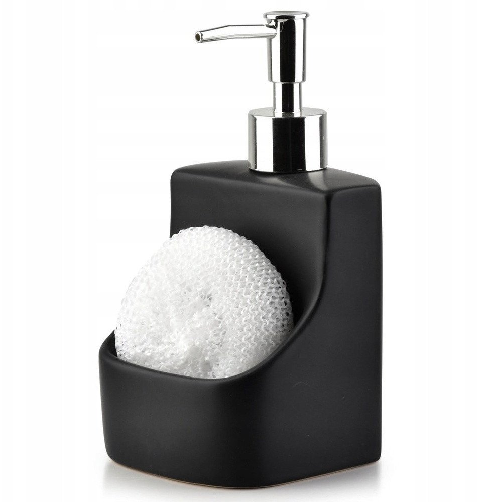 Διανεμητής υγρού πιάτων με δοχείο για σφουγγάρι και με σφουγγάρι κεραμικό μαύρο 400 ml