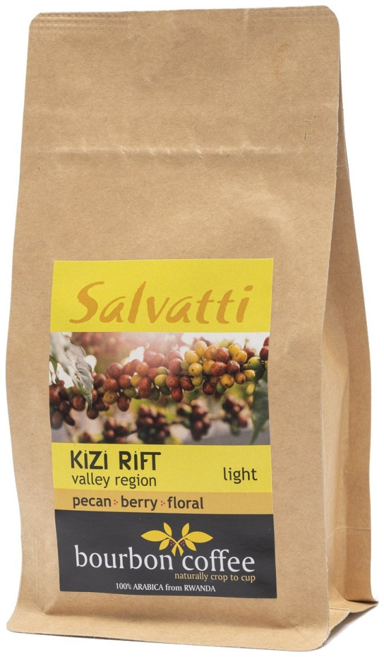 Kawa ziarnista jasno palona "Kizi Rift" 250g Kawa Arabica, jasno palona, wysokogatunkowa typu "Speciality" z Rwandy z aromatami naturalnymi pochądzącymi z gleby, na której rośnie kawa. Waga: 250g 100% Arabika typu Bourbon Kizi Rift - to kawa uprawiana w środkowej części Rwandy, w regionie doliny Kizi Rift. Rośnie w wysokich górach, powyżej 2000 metrów. Zachwyca orzechowo –owocowym smakiem z delikatnym akcentem pieczonych kasztanów. Kawa Kizi Rift należy do najszlachetniejszego gatunku kaw Arabica. Rośnie na wysokości 2000 – 2200 m, w centralnej części Rwandy. Jej plantacje rozciągają się od lasu deszczowego Nyungwe do wulkanicznego pasma Virunga. O łagodnym smaku orzechów i pieczonych kasztanów z karmelowym akcentem jest ulubionym napojem kobiet o wysublimowanym poczuciu piękna. Kawa delikatna, jasno palona nadaję się do metod przelewowych i alternatywnych. Aromaty: Orzechy, owoce.