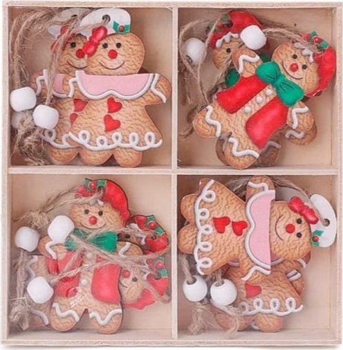 eCarla Σετ ξύλινων στολιδιών για το χριστουγεννιάτικο δέντρο PIERNICZKI, 12 τεμάχια στη συσκευασία BSN47