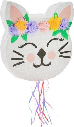 Πινιάτα σε σχήμα κεφαλιού γάτας, με χρώμα λουλουδιών: λευκές διαστάσεις: 33x35x7,5 εκ. Η πινιάτα είναι άδεια εσωτερικά - για αυτογεμισμό Η πινιάτα μπορεί να γεμιστεί με καραμέλες ή παιχνίδια που ζυγίζουν όχι περισσότερο από 1 κιλό.{Type} Piñatas