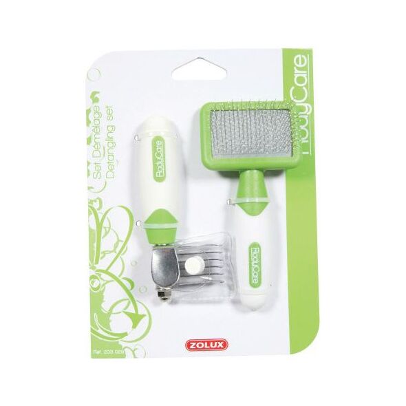 Ένα πλήρες σετ για το χτένισμα των μαλλιών τρωκτικών. Περιέχει βούρτσα που προσθέτει όγκο στα μακριά μαλλιά και μαξιλαράκι από τσόχα. Το προϊόν είναι ασφαλές και προσαρμοσμένο στο μέγεθος των ζώων. Άνετες, εργονομικές και αντιολισθητικές λαβές.