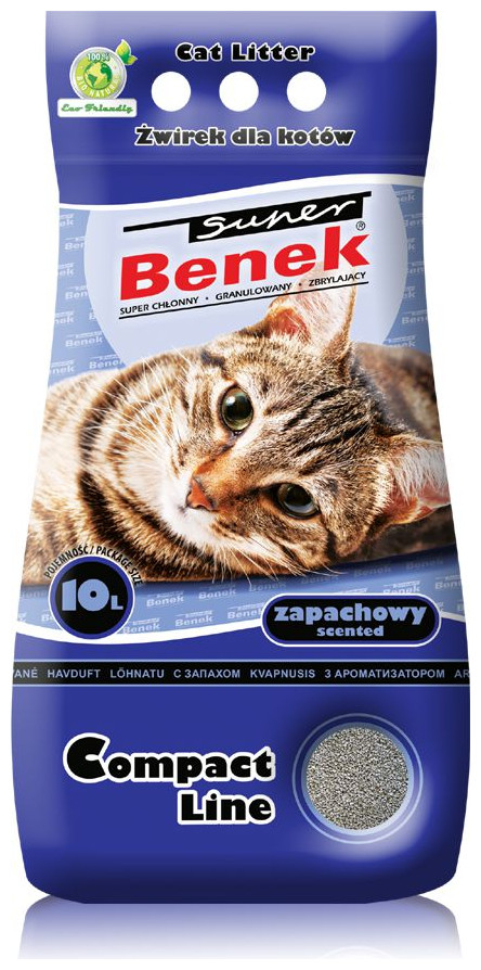 Τα σκουπίδια υγιεινής Super Benek Compact χαρακτηρίζονται από λεπτό μέγεθος κόκκων (0,5-2 mm). Ένα με ακρίβεια επιλεγμένο κλάσμα και η τεχνολογία παραγωγής που χρησιμοποιείται εξασφαλίζουν εξαιρετική απόδοση απορριμμάτων. Το προϊόν συσσωματώνεται πολύ καλά, σχηματίζοντας κανονικούς, μικρούς και επίπεδους σβώλους. Η υψηλή απορροφητικότητα επιτρέπει στο προϊόν να χρησιμοποιείται για μεγάλο χρονικό διάστημα.