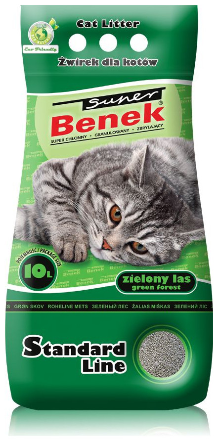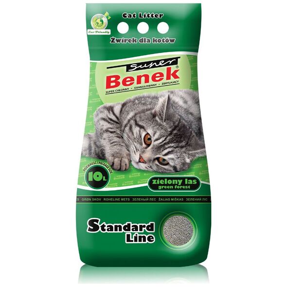 Οι υγιεινές άμμους γάτας Super Benek Standard είναι προϊόντα που χαρακτηρίζονται από κανονικούς, χονδροειδείς κόκκους διαστάσεων 2-5 mm, οι οποίοι παρέχουν την καλύτερη προστασία από το άπλωμα της στρωμνής. Απορροφά τα υγρά και τις δυσάρεστες οσμές πολύ αποτελεσματικά, παρέχοντας καλή αντιβακτηριακή προστασία. Συσσωματώνονται μεταξύ τους για να σχηματίσουν κανονικούς, συμπαγείς σβώλους. Ξηρά, ελαφριά, ζεστά - δίνουν την εντύπωση ότι θερμαίνονται, παρέχοντας στο ζώο άνεση χρήσης. Πολύ απορροφητικοί κόκκοι χωρίς σκόνη που δεν κολλάνε στο κάτω μέρος του κουτιού απορριμμάτων.