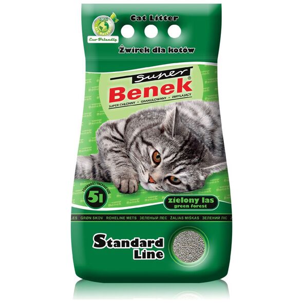 Οι υγιεινές άμμους γάτας Super Benek Standard είναι προϊόντα που χαρακτηρίζονται από κανονικούς, χονδροειδείς κόκκους διαστάσεων 2-5 mm, οι οποίοι παρέχουν την καλύτερη προστασία από το άπλωμα της στρωμνής. Απορροφά τα υγρά και τις δυσάρεστες οσμές πολύ αποτελεσματικά, παρέχοντας καλή αντιβακτηριακή προστασία. Συσσωματώνονται μεταξύ τους για να σχηματίσουν κανονικούς, συμπαγείς σβώλους. Ξηρά, ελαφριά, ζεστά - δίνουν την εντύπωση ότι θερμαίνονται, παρέχοντας στο ζώο άνεση χρήσης. Πολύ απορροφητικοί κόκκοι χωρίς σκόνη που δεν κολλάνε στο κάτω μέρος του κουτιού απορριμμάτων.