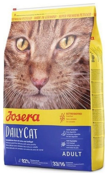 Η τροφή Josera DailyCat είναι μια ιδανική εναλλακτική για γάτες που δεν ανέχονται τα δημητριακά. Οι γλυκοπατάτες και τα μπιζέλια που περιέχει παρέχουν φυτικές ίνες, βιταμίνες και πολύτιμες θρεπτικές αξίες, ενώ τα βότανα και τα φρούτα διαφοροποιούν και κάνουν τη γεύση του φαγητού πιο ελκυστική, κάτι που θα ικανοποιήσει και τους πιο απαιτητικούς γατοφάγους.