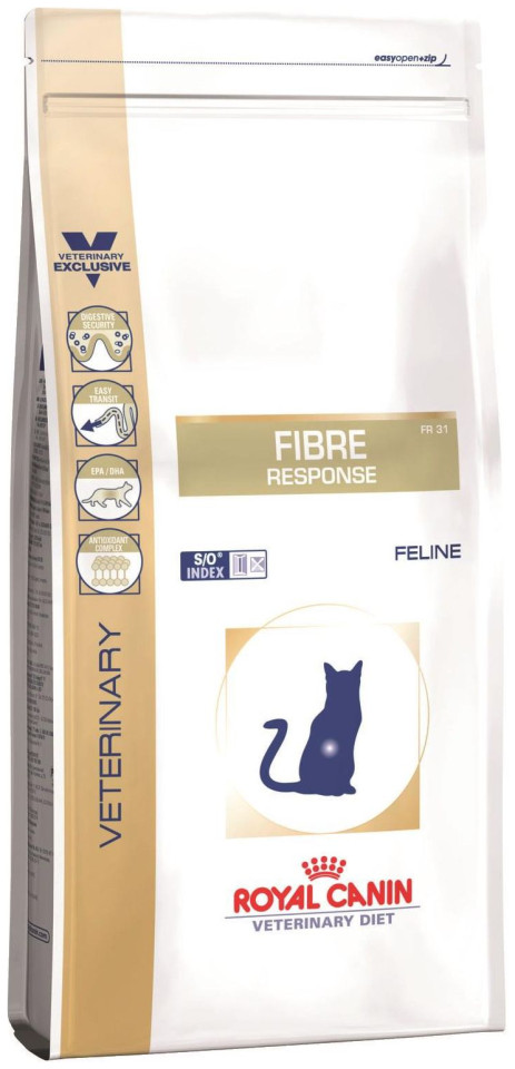 Διάρκεια θεραπείας: - αρχικά 3-4 εβδομάδες - σε περίπτωση υποτροπιάζουσας δυσκοιλιότητας, συνιστάται η χρήση της δίαιτας FIBER RESPONSED για μεγάλο χρονικό διάστημα των κοπράνων με βέλτιστη συνοχή και έτσι αποτρέπει τη δυσκοιλιότητα. Κλινικές μελέτες επιβεβαιώνουν την αποτελεσματικότητα της δίαιτας FIBER RESPONSE για την πρόληψη της χρόνιας δυσκοιλιότητας. Το προϊόν χορηγήθηκε σε γάτες που υπέφεραν από δυσκοιλιότητα (το 60% από αυτές δεν ανταποκρίθηκαν σε προηγούμενη φαρμακολογική και διαιτητική θεραπεία). Βελτίωση στη συνοχή των κοπράνων παρατηρήθηκε σε όλες τις γάτες μετά από λίγες μόνο ημέρες χρήσης της δίαιτας (μελέτη Royal Canin 2009)