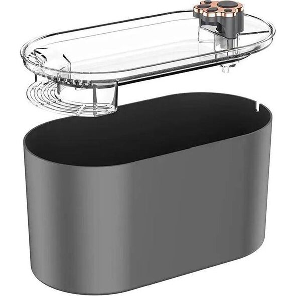 Automatyczne poidełko dla zwierząt domowych. Atrakcyjna, smukła konstrukcja wyposażona w fontannę z pojemną niecką. Duży zbiornik na wodę o pojemności aż 3 litrów zapewnia długotrwałe użytkowanie. System filtrujący (z wymiennym filtrem) zapewnia świeżą i czystą wodę dla naszego pupila. Poidło wyposażone zostało w cichą i wydajną pompę, urządzenie może z powodzeniem pracować w nocy. Bezpieczeństwo użytkowania zwiększają funkcje automatycznego wyłączania oraz sygnalizacji niskiego stanu wody (za pomocą podświetlenia LED). UWAGA: Produkt nie zawiera zasilacza sieciowego! Cechy i specyfikacja produktu: Automatyczne poidełko dla zwierząt domowych. Atrakcyjna, smukła konstrukcja wyposażona w fontannę. Pojemny zbiornik na wodę. Cicha i wydajna pompa. Materiał: tworzywo sztuczne (ABS) Zasilanie: USB 5V DC (sam kabel, bez zasilacza!) Długość kabla: 1,3 m Moc: 1,5W Pojemność zbiornika: 3 L System filtrujący wodę (możliwość wymiany filtra) Sygnalizacja niskiego stanu wody (podświetlenie LED) Funkcja automatycznego wyłączania (przy braku wody) Wysokość: 13 cm Szerokość: 25 cm Głębokość: 13 cm Kolor: ciemno - szary Zapraszamy do złożenia zamówienia!