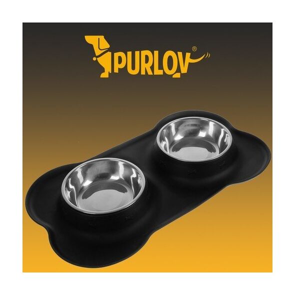 Διπλό μπολ Purlov για γάτες, σκύλους, ζώα Βάση ποτίσματος + 2x μπολ 450ml