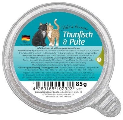 Φιλέτο GranataPet a la carte τόνος με γαλοπούλα τροφή για γάτες 85g
