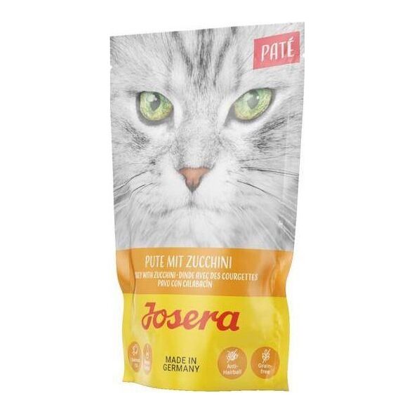 Νόστιμα και πρακτικά φακελάκια, ιδανικά για ένα γεύμα! Τα πατέ με γαλοπούλα και κολοκυθάκια σίγουρα θα ευχαριστήσουν τον ουρανίσκο του κατοικίδιου ζώου σας. Η προσθήκη ελαίου σολομού είναι πηγή ωμέγα-3 λιπαρών οξέων, που εξασφαλίζουν υγιές δέρμα και λαμπερό τρίχωμα. Οι ειδικές διαιτητικές ίνες που προστίθενται στα τρόφιμα διευκολύνουν την απομάκρυνση των καταπομένων τριχών από το πεπτικό σύστημα και μειώνουν τον κίνδυνο σχηματισμού τριχομπόλων.