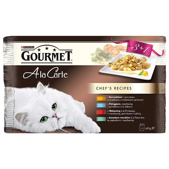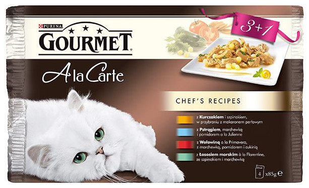 {Age} Ενήλικες γάτες (1+) . {Γεύση} Με κοτόπουλο. {Γεύση} Με μοσχάρι. {Race} Όλα . {Γεύση} Με ψάρι. {Γεύση} με άλκες. {Καθαρό βάρος} 4x85 g . Φακελάκια {Packaging}. {Ιδιότητες} Για διαβητικές γάτες