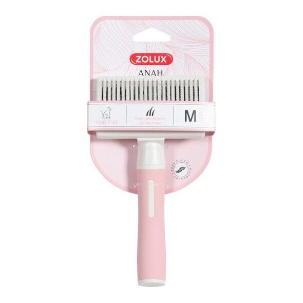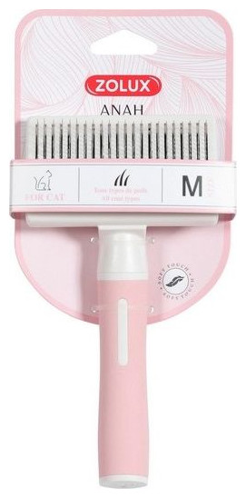 Η ZOLUX ANAH Παρουσιάζουμε μια νέα, πλήρη σειρά προϊόντων περιποίησης ANAH, που δημιουργήθηκε για να ανταποκριθεί σε όλες τις ανάγκες των σκύλων και των γατών. Έχουμε σχεδιάσει μια νέα λαβή που εξασφαλίζει μεγαλύτερη άνεση στη χρήση και ταιριάζει τέλεια στο χέρι, χάρη στο εργονομικό σχήμα μαλακό και ευχάριστο στην αφή SOFT TOUCH φινίρισμα και επίστρωση από θερμοπλαστικό καουτσούκ και μαλακές προεξοχές. Επιπλέον, ανεξάρτητα από το μέγεθος του προϊόντος, η λαβή έχει ένα μέγεθος που ταιριάζει τέλεια στο χέρι. , και για γάτες - σε σκόνη ροζ και λευκά χρώματα. Τα αρμονικά και δυναμικά σχήματα των προϊόντων σίγουρα θα προσελκύσουν τους χρήστες Η ποιότητα είναι το κύριο πλεονέκτημα της νέας συλλογής προϊόντων περιποίησης ANAH. Τα προϊόντα είναι κατασκευασμένα από πλαστικό ABS, το οποίο είναι ιδιαίτερα ανθεκτικό στο πέρασμα του χρόνου. Ένας θερμοπλαστικός δακτύλιος από καουτσούκ τοποθετημένος ανάμεσα στη λαβή και την κεφαλή της βούρτσας κάνει το προϊόν να εφαρμόζει σταθερά στο χέρι. Όλα τα μεταλλικά στοιχεία, δηλαδή οι λεπίδες, τα δόντια και οι προεξοχές, είναι κατασκευασμένα από ανοξείδωτο ατσάλι με αναδιπλούμενες βελόνες ΓΙΑ ΓΑΤΕΣ, ΜΕΣΑΙΕΣ Εύκαμπτες, καμπύλες βελόνες που επιτρέπουν το απαλό βούρτσισμα του υποστρώματος. Χάρη στις αναδιπλούμενες βελόνες, το πινέλο είναι άνετο στη χρήση και εύκολο να διατηρηθεί καθαρό. Χτενίζει, αφαιρεί το νεκρό υπόστρωμα και λειαίνει τη γούνα Σχεδιασμένο για όλους τους τύπους μαλλιών Διαστάσεις προϊόντος: 92 x 50 x 175 mm