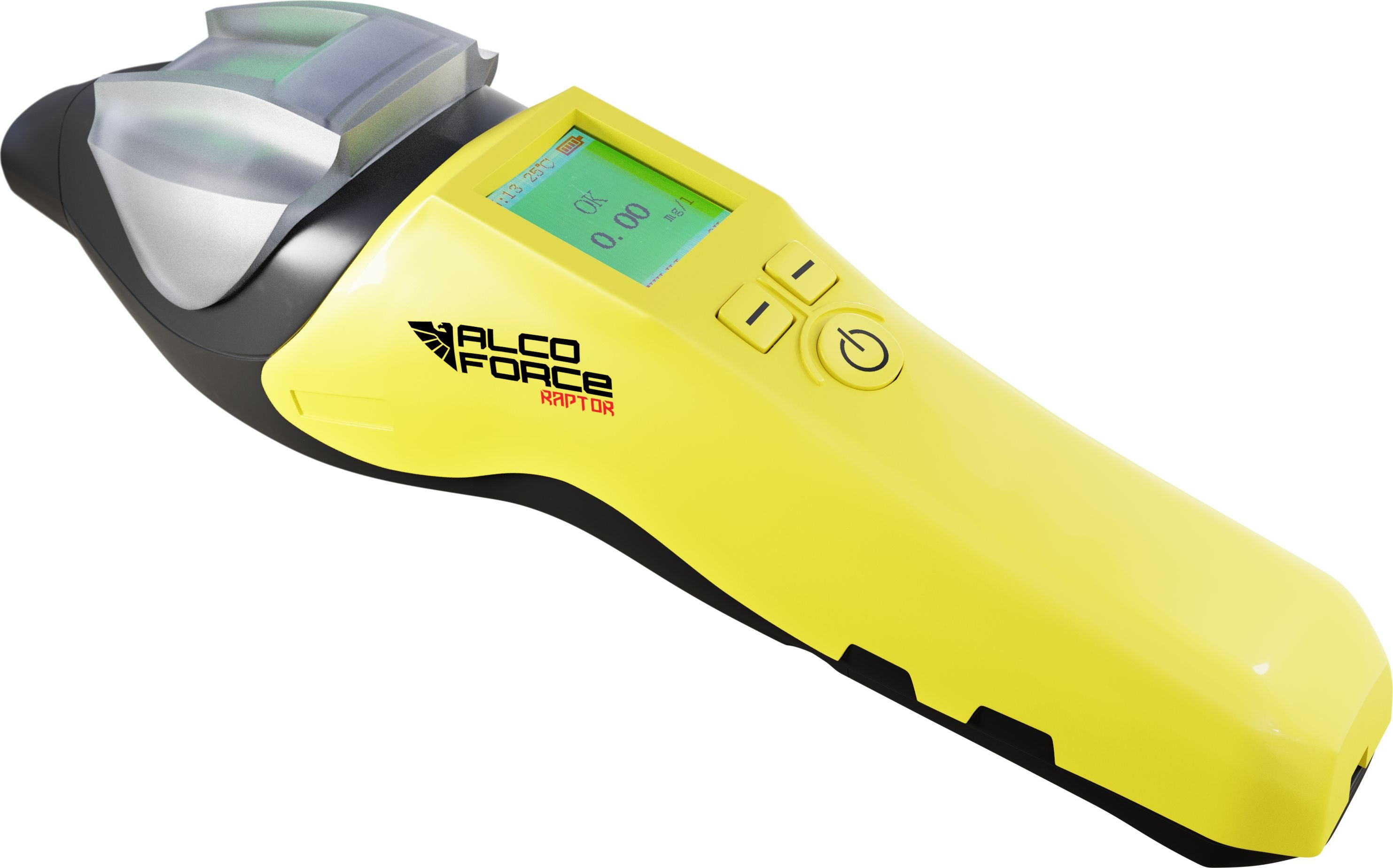 RAPTOR to wysokiej klasy alkomat dedykowany do masowych badań przesiewowych. Jest idealnym narzędziem do bardzo szybkiego badania dużych grup ludzi, wszędzie tam gdzie nie jest potrzebna dokładna informacja o ilości alkoholu w wydychanym powietrzu, a jedynie czy alkohol w wydychanym powietrzu występuje. RAPTOR doskonale sprawdzi się w pracy policji , służb mundurowych, w dużych zakładach pracy, przy organizacji imprez masowych itp. Alkomat RAPTOR jest na wyposażeniu policji wielu krajów m.in. Włoch, Indii, Australii.Dzięki zastosowaniu niezwykle szybkiego, nowoczesnego sensora elektrochemicznego pomiar trwa zaledwie 4 sek. Alkomat pracuje w sposób ciągły co daje możliwość przebadania ponad pół tysiąca osób na godzinę. O orientacyjnym stężeniu alkoholu wwydychanym powietrzu informuje kolorowy wyświetlacz LCD. Alkomat sygnalizuje wykrycie alkoholu czerwoną lampą sygnalizacyjną oraz podświetleniem ekranu LCD. Wyniki pomiaru: W trybie aktywnym wynik badania wyświetlany jest na wyświetlaczu LCD w zakresie0.00 - 2.00‰ + sygnalizacja świetlna. Samokontrola poprawności działania: Oprogramowanie RAPTOR potrafi zweryfikować prawidłowe działanie sensora oraz stan naładowania baterii. Alkomat posiada również kontrolę przepływu powietrza, aby zapewnić odpowiednią pojemność badanej próbki. Wygoda i ergonomia: Alkomat RAPTOR został zaprojektowany dla maksymalnej wygody użytkownika. Jest ergonomiczny wygodny i poręczny.Alkomat wskazuje komunikaty w języku polskim. Tryby pracy: Automatyczny – urządzenie samo wykrywa wydech i pobiera próbkę. Ręczny (pasywny) – urządzenie pobiera próbkę po naciśnięciu przycisku. Przydatny w przypadku gdy badany nie może lub nie chce dostarczyć próbki, lub np. do badania płynów na obecność alkoholu etylowego.