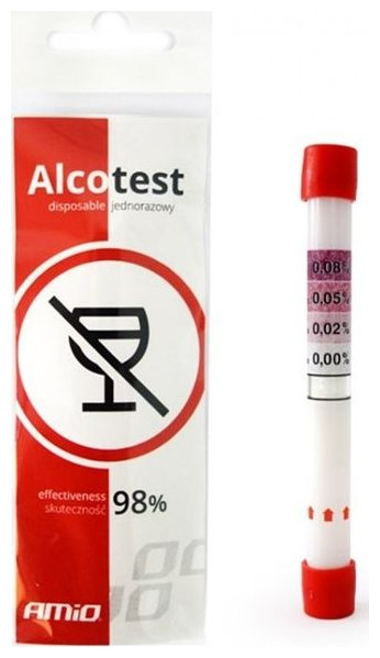 Certyfikowany alkomat jednorazowy AMiO – charakterystyka produktu Jednorazowy alkomat marki AMiO to praktyczne i niezawodne urządzenie do samodzielnego sprawdzenia zawartości alkoholu w wydychanym powietrzu. Wyniki testu należy odczytywać za pomocą prostej czterostopniowej skali. Łatwy w użyciu, precyzyjny alkotest AMiO stanowi skuteczną i mniej kosztowną alternatywę dla elektronicznych rozwiązań. Sterylnie opakowany produkt gwarantuje komfort i higienę użytkowania. Alkomat jednorazowy AMiO wykonany został z najwyższą dbałością o standardy bezpieczeństwa i posiada niezbędne oznaczenia jakości. Niewielkich rozmiarów jednorazowy alkomat można przechowywać w torebce lub włożyć do kieszeni. Doskonale sprawdzi się jako podstawowe wyposażenie apteczki samochodowej. W razie ewentualnych wątpliwości dotyczących prowadzenia pojazdu po wcześniejszym spożyciu alkoholu akcesorium pomoże sprawdzić stan trzeźwości oraz uchronić przed przykrymi konsekwencjami jazdy pod wpływem. Wykonanie testu jest proste i nie trwa dłużej niż kilka minut. Szklana rurka alkomatu wypełniona jest specjalną substancją, która w połączeniu z alkoholem zmienia barwę. Reagent chemiczny na bazie jodu pod wpływem alkoholu zabarwia się na różne odcienie różu i purpury. Jeśli po wdmuchnięciu powietrza barwa czynnika zmieni się, wystarczy odpowiednio zinterpretować wynik. Jeśli reakcja nie wywoła żadnego efektu, z 98-procentową pewnością oznacza to, że jesteśmy trzeźwi. Test z użyciem jednego alkomatu można przeprowadzić tylko raz. Produkt należy wykorzystywać zgonie z zaleceniami. Każde odstępstwa mogą zaburzać wyniki pomiaru, a tym samym osłabiać jego skuteczność i precyzję. Co wchodzi w skład zestawu i czym wyróżnia się alkomat jednorazowy od AMiO? Na zestaw testowy do samodzielnego sprawdzenia trzeźwości marki AMiO składa się szklana rurka wypełniona czynnikiem chemicznym reagującym z alkoholem obecnym w wydychanym powietrzu. Pod jego wpływem znacznik na rurce zmienia swoją barwę. Szczelne i trwałe opakowanie chroni urządzenie przed uszkodzeniem i wpływem niekorzystnych czynników zewnętrznych. Rurka zabezpieczona jest także dwiema nasadkami, które usuwa się bezpośrednio przed wykonaniem testu. Niewątpliwą zaletą jednorazowego alkomatu AMiO jest jego rozmiar. Małe urządzenie łatwo schować do kieszeni czy torebki, tak by w każdej chwili mieć je przy sobie, gotowe do użycia. Cały dobrze pomyślany zestaw nie wymaga zastosowania dodatkowych narzędzi, a jego obsługa jest banalnie prosta. Specjalna konstrukcja zapobiega wydostaniu się środka chemicznego użytego w alkomacie. Alkotest AMiO nie zawiera szkodliwych rakotwórczych substancji. Uniwersalne akcesorium można wykorzystać po gęsto zakrapianej imprezie lub dla sprawdzenia stanu trzeźwości pracownika. Jak prawidłowo wykonać pomiar trzeźwości z jednorazowym alkomatem AMiO? Alkotest jednorazowy AMiO to praktyczne urządzenie, z którego często korzystają osoby sporadycznie pijące napoje wyskokowe. Oczywistym jest fakt, że nie wolno wsiadać za kierownicę po spożyciu nawet niewielkiej ilości piwa, wódki czy wina. Dopuszczalna ilość alkoholu określona w polskim kodeksie drogowym wynosi 0,2‰. Zwykle jednak trudno określić, po jakim czasie od ostatniego drinka możemy prowadzić samochód. Tym bardziej że każdy organizm regeneruje się w indywidualnym tempie. W takiej sytuacji sprawdza się tańszy niż jego elektroniczne odpowiedniki jednorazowy alkotest, dzięki któremu szybko ocenisz swoją trzeźwość i być może uchronisz przed przykrymi konsekwencjami nielegalnej jazdy pod wpływem. Wykonanie testu nie jest trudne. Aby jednak uzyskać wiarogodny wynik, warto precyzyjnie wykonać wszystkie czynności opisane w instrukcji. Pamiętajmy, że palenie papierosów oraz żucie gumy może zaburzyć pomiar. Po wyjęciu urządzenia z opakowania należy usunąć nasadki zabezpieczające znajdujące się po obu stronach szklanej rurki. Powietrze wdmuchujemy w ustnik energicznie, nieprzerwanym strumieniem przez kilkanaście sekund. Wynik otrzymujemy już po 1 do 2 minut. Alkohol w testowanej próbce zmienia barwę znacznika, a czterostopniowa skala pozwala jednoznacznie odczytać wynik. Alkotest AMiO jest akcesorium jednorazowym. Po użyciu wszystkie jego elementy należy wyrzucić do kosza.