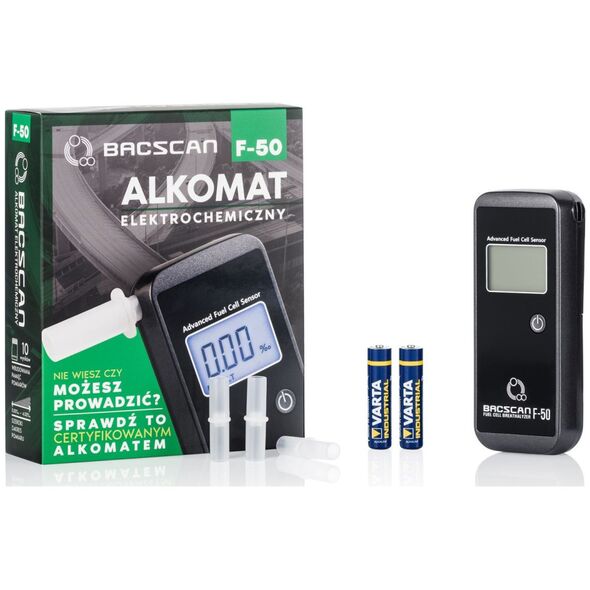 Το F50 τροφοδοτείται από δύο αλκαλικές μπαταρίες 1,5V AAA. Η χρήση των πιο πρόσφατων ηλεκτρονικών εξαρτημάτων επιτρέπει τον απλό και γρήγορο έλεγχο για την παρουσία αλκοόλης στον εκπνεόμενο αέρα.